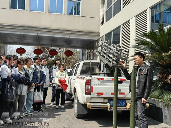 當天,南山中學高二年級的130位師生剛走進綿陽市氣象局大院,就被人工增雨作業(yè)車載發(fā)射器和人工增雨火箭彈模型吸引住了。綿陽市人工影響天氣辦公室專家汪俊對人工增雨火箭彈發(fā)射過程及工作原理進行了詳細介紹。