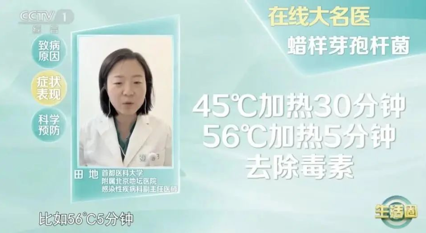 蠟樣芽孢桿菌產(chǎn)生的腹瀉型腸毒素,45℃加熱30分鐘,56℃加熱5分鐘,可以去除毒素。