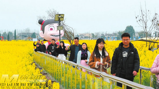 綿陽新聞網(wǎng)訊 眼下,安州區(qū)糧油現(xiàn)代農(nóng)業(yè)園區(qū)里的油菜花競相開放,如同一片金色的海洋,美得令人心醉,吸引著四面八方的游客。游客的暴增給當(dāng)?shù)卮彐?zhèn)帶來了“流量”,如何將“流量”變“留量”,讓“網(wǎng)紅”變“長紅”,讓農(nóng)文旅深度融合助力鄉(xiāng)村振興和經(jīng)濟(jì)社會高質(zhì)量發(fā)展?秀水鎮(zhèn)給出的答案是:用“接地氣”的創(chuàng)意,把農(nóng)田變公園,讓游客為風(fēng)景而來,為體驗(yàn)留下。