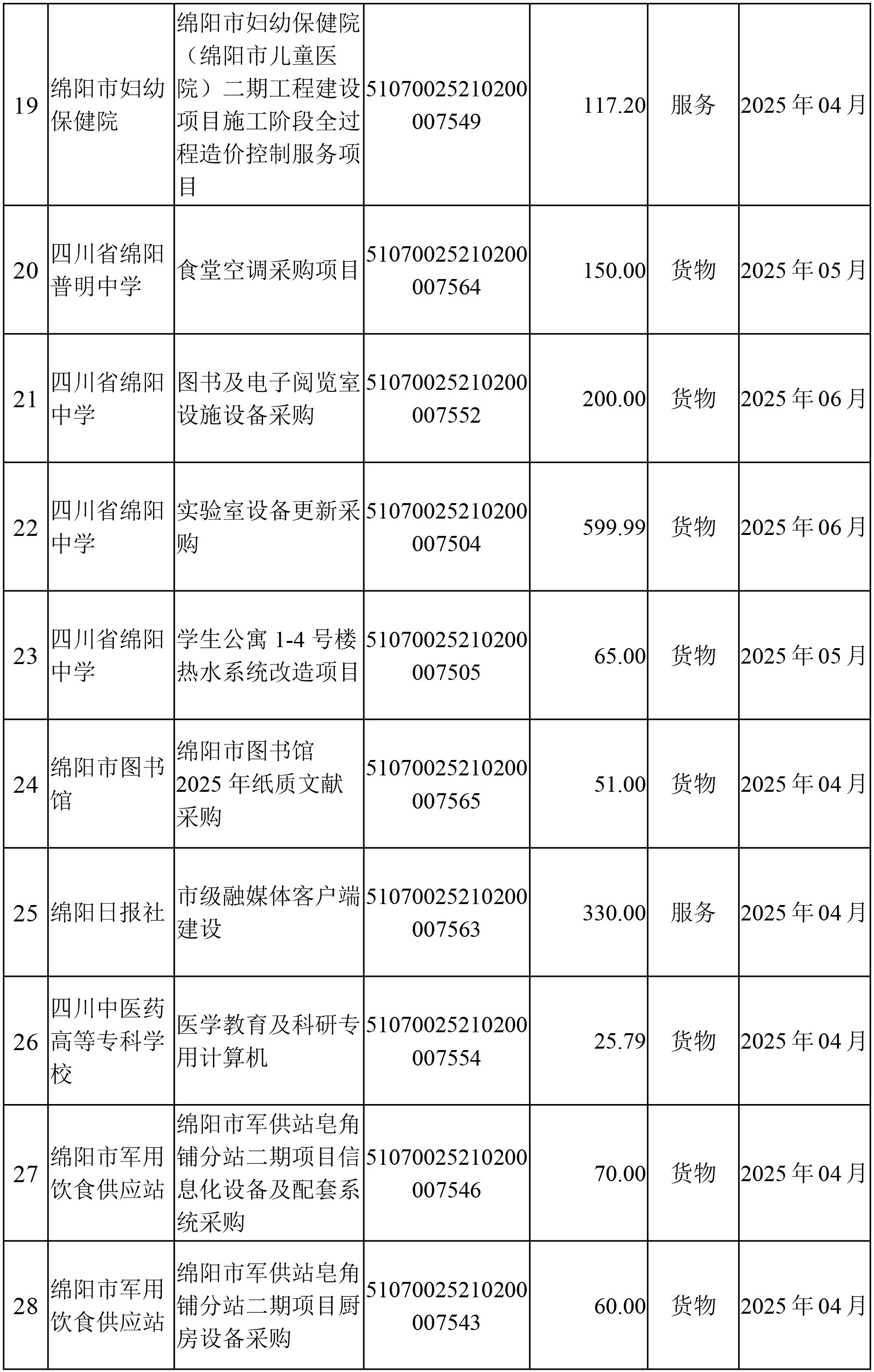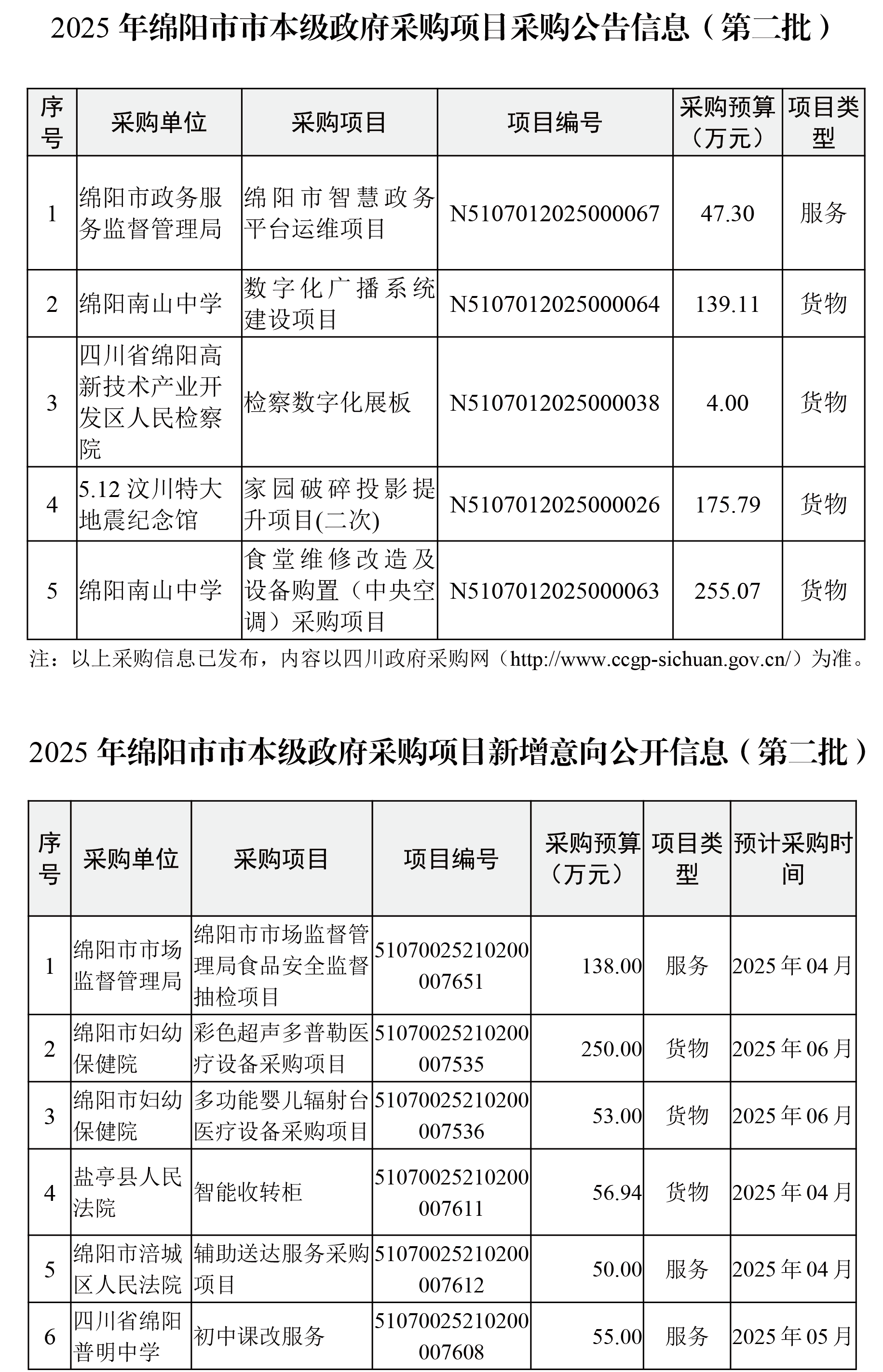 44個(gè)政府采購項(xiàng)目的“機(jī)會(huì)清單”出爐?。?025年第二波) 綿陽市市本級(jí)政府采購項(xiàng)目信息動(dòng)態(tài) (2025年第二批)