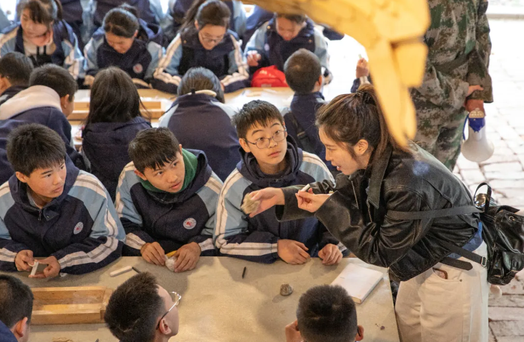 在古法制玉工坊,同學們用皮繩帶動轉砣,親手打磨一塊青玉原石。汗水順著下巴滴落,玉屑在指縫間閃爍,初三四班的趙同學忽然說:“我好像懂了‘君子比德于玉’的意思——原來玉的溫潤,是要用時間慢慢養(yǎng)出來的。”?