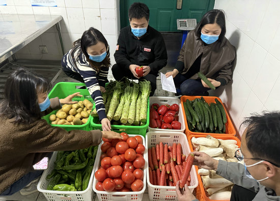 首先,開展驗貨活動。膳食監(jiān)督家長委員們和食品安全員、驗貨員、庫管員一同核對食材種類、數(shù)量、重量,查驗食材是否新鮮,確保食材與幼兒園采購清單一致。