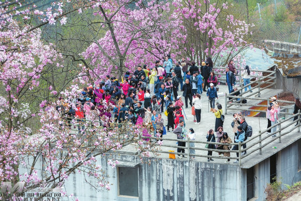 游客在九皇山觀賞辛夷花