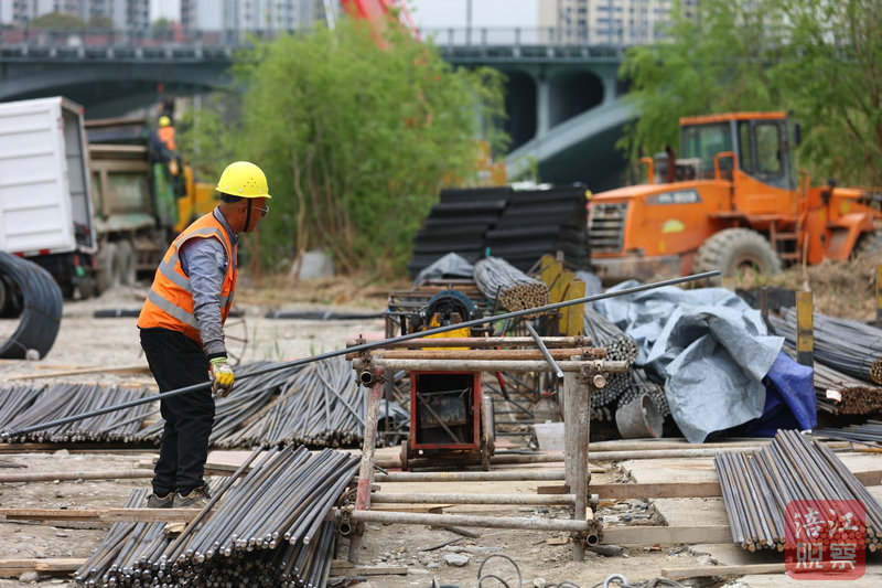 3月30日,記者來到綿陽市濱河南路道路綜合改造工程(安昌橋至白衣庵)南河閘壩改造項目施工現(xiàn)場看到,這里機(jī)械聲轟鳴,工人們有序施工,一片繁忙景象。