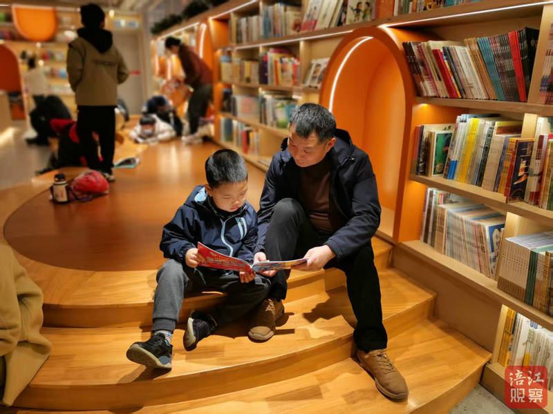經(jīng)開(kāi)區(qū)的湯先生把小兒子抱在懷里,兩人一起看著一本書(shū),其樂(lè)融融。湯先生說(shuō),平時(shí)工作比較忙,今天是第一次帶小兒子和他哥哥來(lái)看書(shū),以后有時(shí)間也會(huì)盡量多帶他們來(lái)。