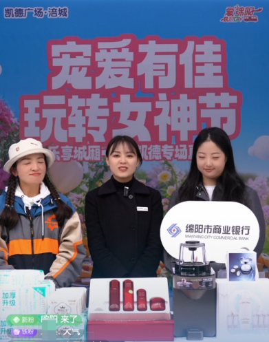 節(jié)日互動(dòng)觸達(dá)新客群:“女神節(jié)”期間,綿商行聯(lián)合城廂街道辦、涪城凱德廣場(chǎng)推出“寵愛(ài)有佳,玩轉(zhuǎn)女神節(jié)”主題直播活動(dòng)。通過(guò)“線上抽獎(jiǎng)+趣味互動(dòng)+金融科普”模式,吸引超萬(wàn)人實(shí)時(shí)參與,彈幕互動(dòng)量逾千條,以年輕化形式實(shí)現(xiàn)品牌傳播與客戶觸達(dá)的“雙豐收”。