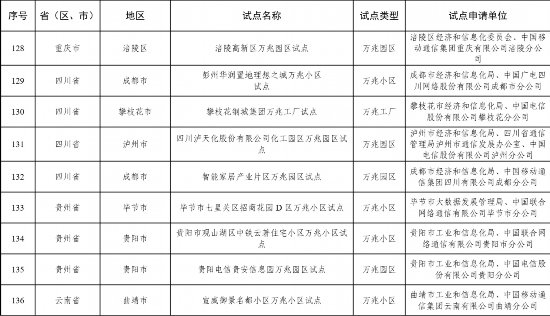 四川省4個點位入圍試點名單。其中2個為園區(qū),1個為工廠,1個為小區(qū),分別是:彭州華潤置地理想之城萬兆小區(qū)、攀枝花鋼城集團萬兆工廠、四川瀘天化股份有限公司化工園區(qū)萬兆園區(qū)、成都智能家居產(chǎn)業(yè)片區(qū)萬兆園區(qū)。