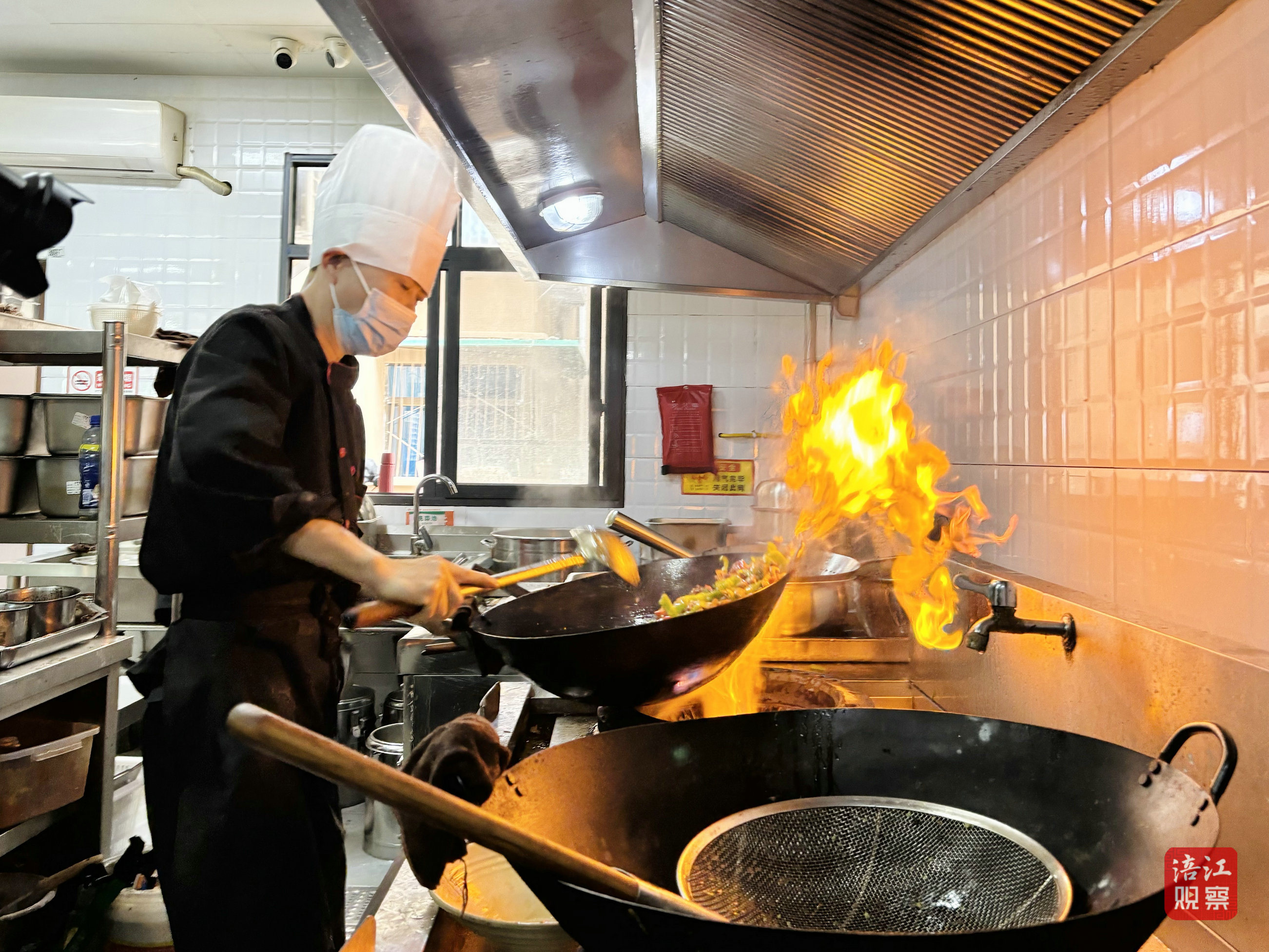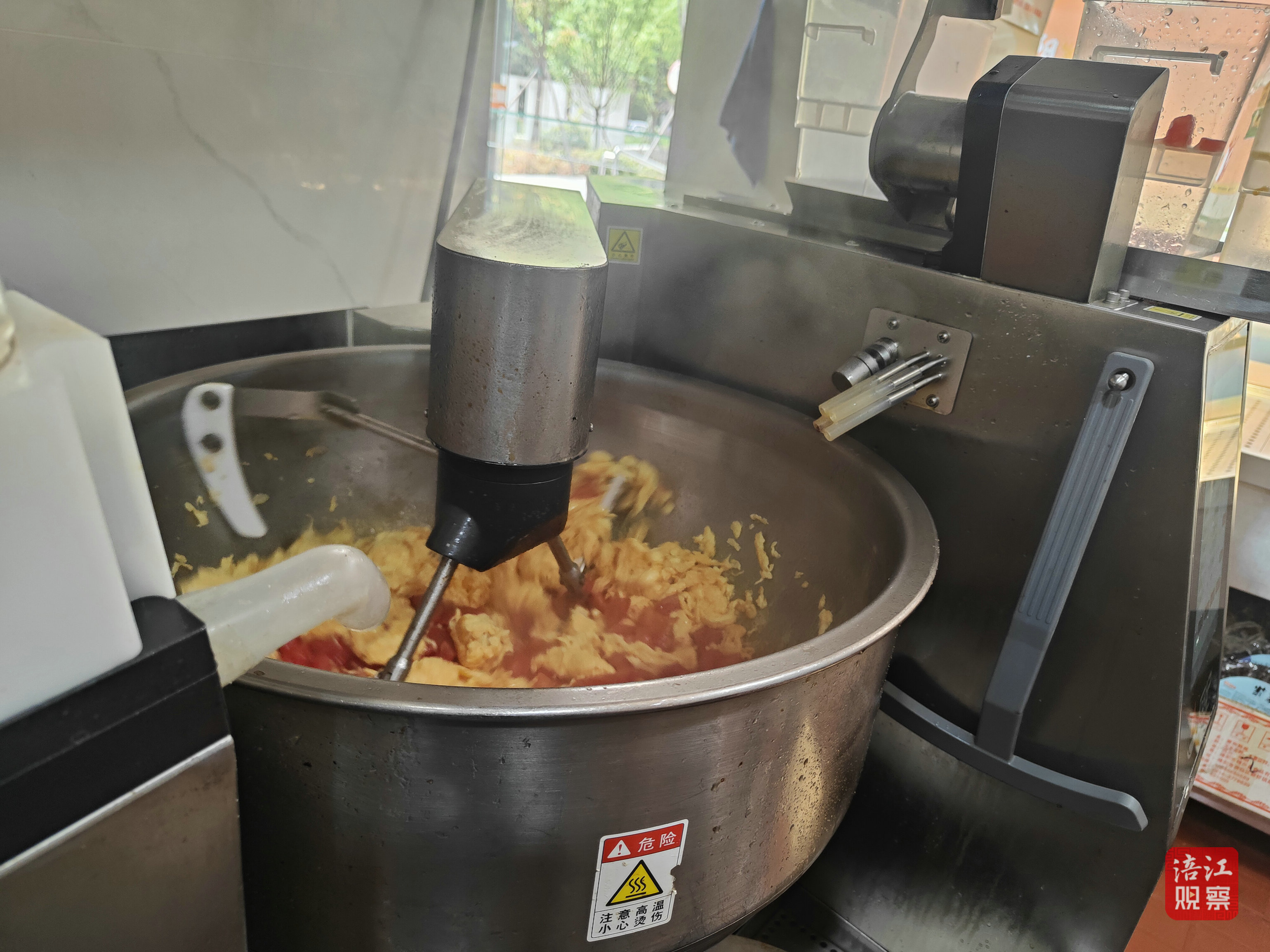 4月9日上午,記者走進(jìn)綿陽(yáng)科技城新區(qū)創(chuàng)業(yè)園街道幸福餐廳——沐陽(yáng)智慧食堂。智慧中央廚房里,廚師和工作人員正在忙碌地摘菜、切肉、炒菜。令人驚訝的是,除了人工炒菜,這里還有一臺(tái)機(jī)器人正在炒青椒肉絲、番茄炒蛋,而主廚則點(diǎn)擊相應(yīng)按鈕,選擇加菜、放調(diào)料等。
