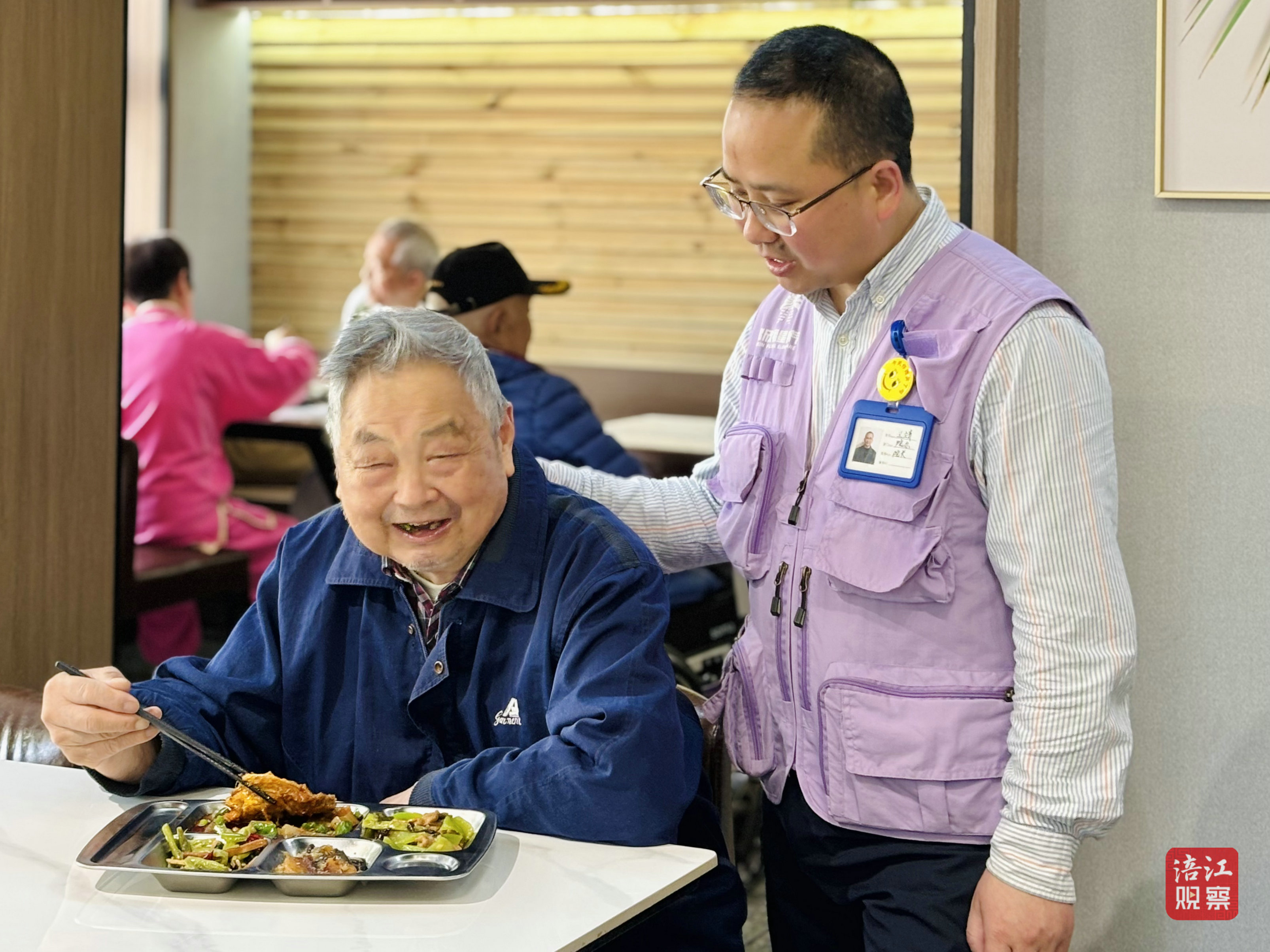 “食堂采取政府補(bǔ)一點(diǎn),企業(yè)掏一點(diǎn)的政策,對(duì)轄區(qū)內(nèi)戶籍人口60歲以上的老年人每餐補(bǔ)助4元錢,常住居民持居住證的60歲以上老人補(bǔ)助2元,90歲以上的老人和‘三屬’免費(fèi)就餐。”科技城新區(qū)創(chuàng)業(yè)園街道陽(yáng)光社區(qū)黨委書記、居委會(huì)主任鐘濤說(shuō)。