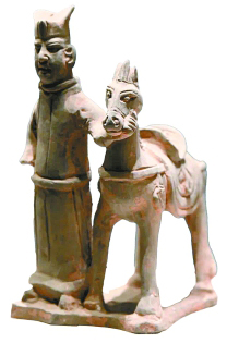 宋灰陶男牽馬俑。