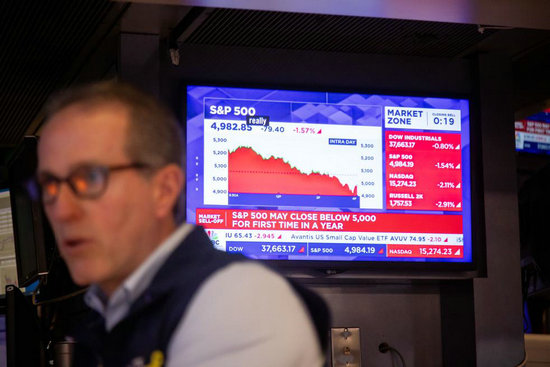 紐約股市三大股指10日大幅低開,收盤時(shí)大幅下跌。道瓊斯工業(yè)平均指數(shù)比前一交易日下跌1014.79點(diǎn),收于39593.66點(diǎn),跌幅為2.50%;標(biāo)準(zhǔn)普爾500種股票指數(shù)下跌188.85點(diǎn),收于5268.05點(diǎn),跌幅為3.46%;納斯達(dá)克綜合指數(shù)下跌737.66點(diǎn),收于16387.31點(diǎn),跌幅為4.31%。