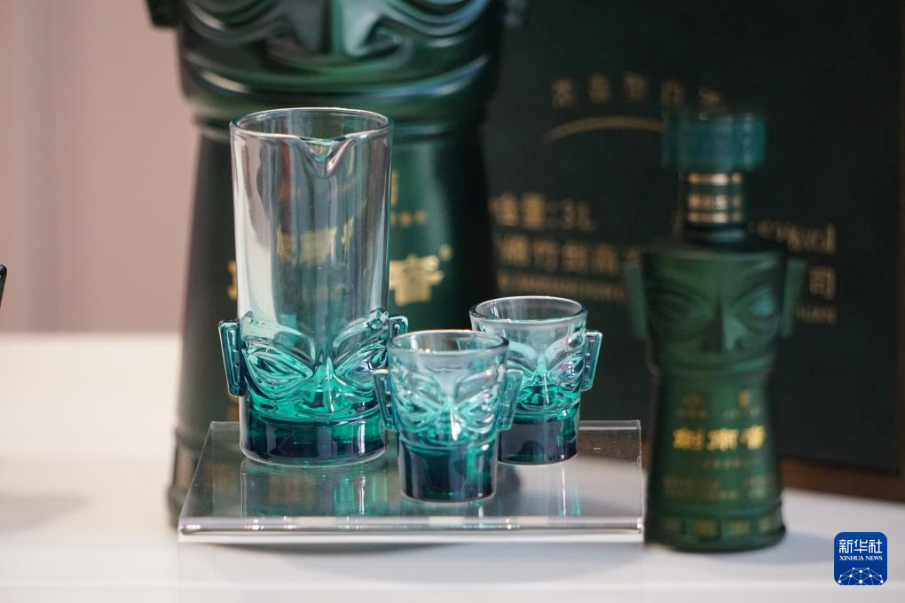 這是4月7日在意大利米蘭設計周中國周文創(chuàng)中國精品展區(qū)拍攝的三星堆遺址特別設計款酒樽。新華社發(fā)(米蘭設計周中國周主辦方供圖)