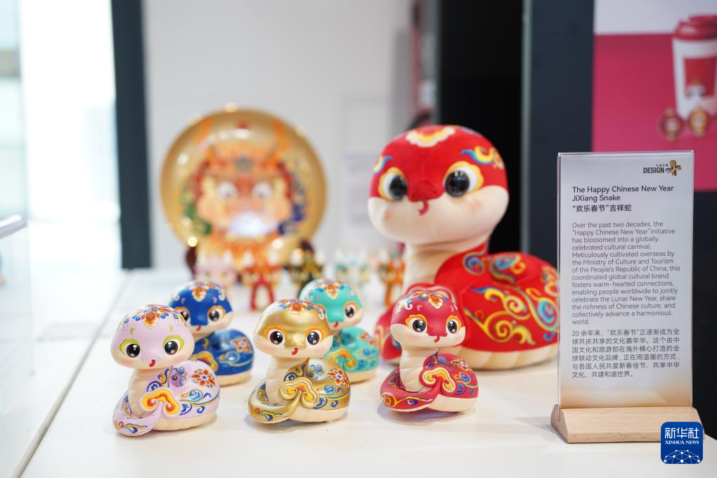 這是4月7日在意大利米蘭設計周中國周文創(chuàng)中國精品展區(qū)拍攝的生肖蛇玩偶。新華社發(fā)(米蘭設計周中國周主辦方供圖)