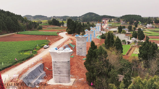 團(tuán)輝村已建好的綿遂內(nèi)橋墩