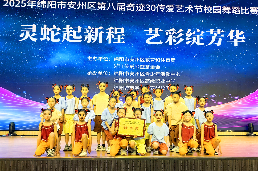 在4月10日落幕的安州區(qū)第八屆奇跡 30 傳愛(ài)藝術(shù)節(jié)校園舞蹈比賽中,安州區(qū)桑棗鎮(zhèn)小學(xué)代表隊(duì)?wèi){借卓越表現(xiàn),從眾多參賽隊(duì)伍中脫穎而出,為學(xué)校再添殊榮。?