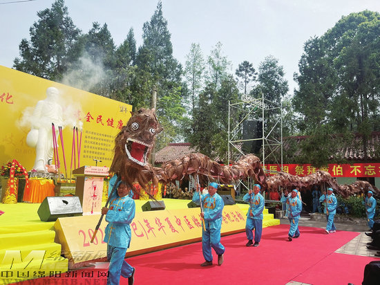 當天上午10時,在“四龍告祭”舞龍表演中,“水龍”率先登場,翻騰于廣場中心,以“龍降甘霖五谷豐登”的千年祈愿致敬醫(yī)祖,“蠶龍”以桑枝為骨、蠶繭點睛演繹蠶桑文化傳承,“桃子龍”傳遞健康長壽希冀,與融入岐伯文化的“藥龍”一起在古樂聲中騰躍九霄,展現(xiàn)中醫(yī)藥文化生生不息的生命力。