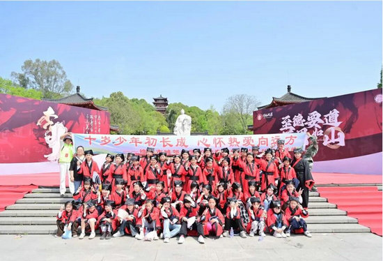 接著,孩子們行拜師禮,這個(gè)環(huán)節(jié)象征著學(xué)子們尊師重道,以文化修養(yǎng)自身,追求更高的精神境界。