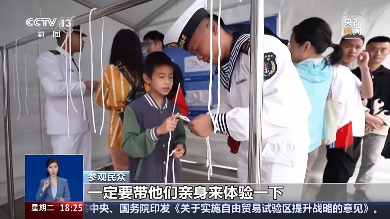 參觀民眾:我覺得國(guó)防教育從娃娃抓起,作為家長(zhǎng)我們除了日常給他科普一些海軍知識(shí),國(guó)防知識(shí)外,像這樣的活動(dòng)一定要帶他們親身來體驗(yàn)一下,海軍節(jié)開放日活動(dòng)的體驗(yàn)感、參與感真的挺好的。