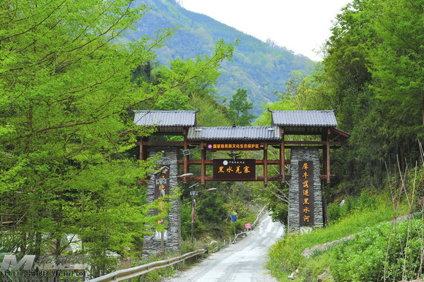 山林間的黑水羌寨寨門