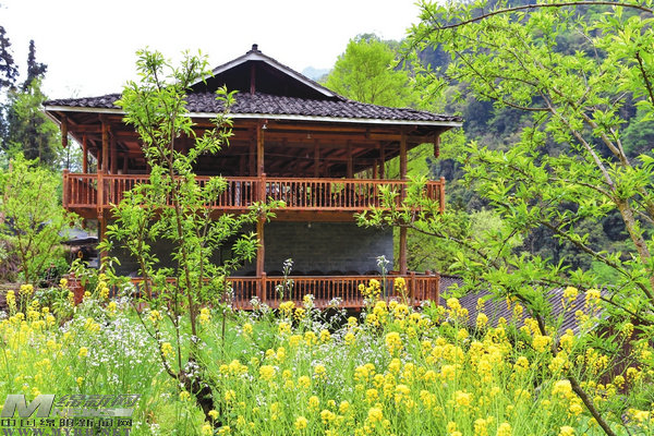 中午時分,家家戶戶的炊煙在山谷中裊裊升起。石步道旁的紫藤在院墻上織就一幅天然畫框,房前屋后野花搖曳,后山竹林沙沙,山間的薄霧與黛瓦木樓共同繪出一幅水墨長卷。