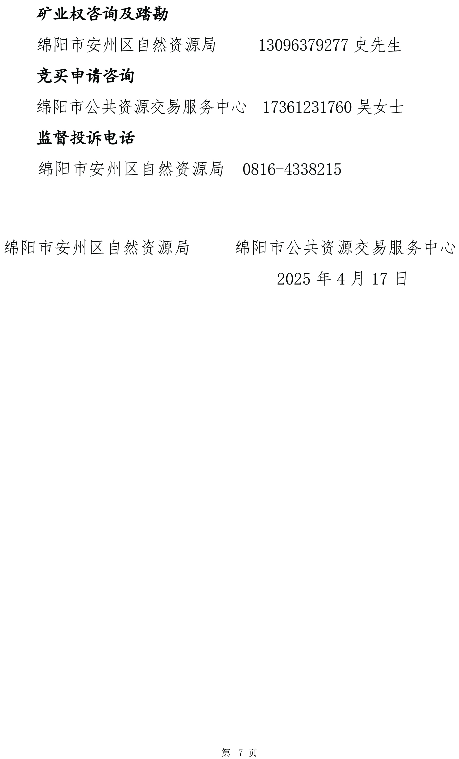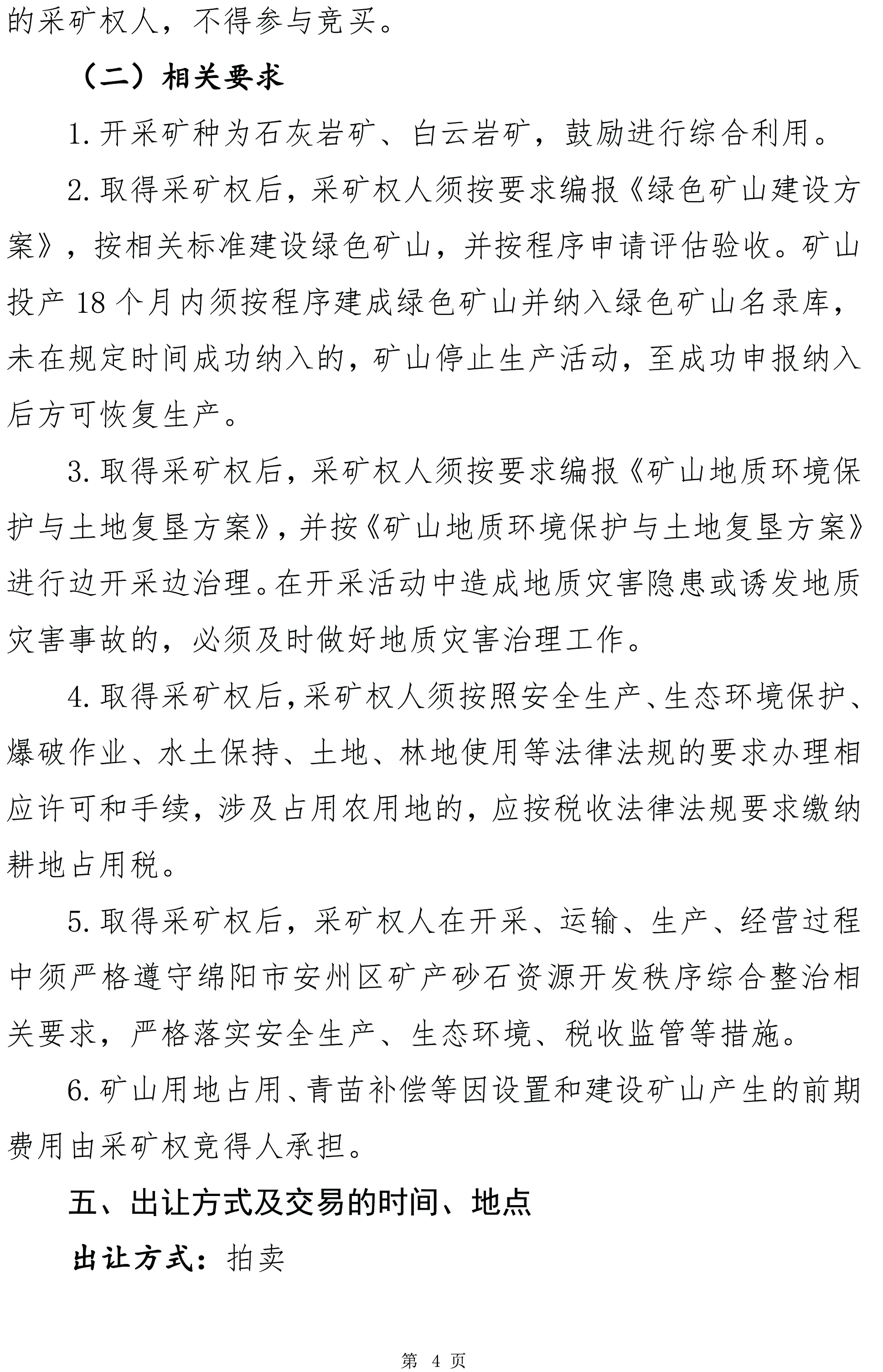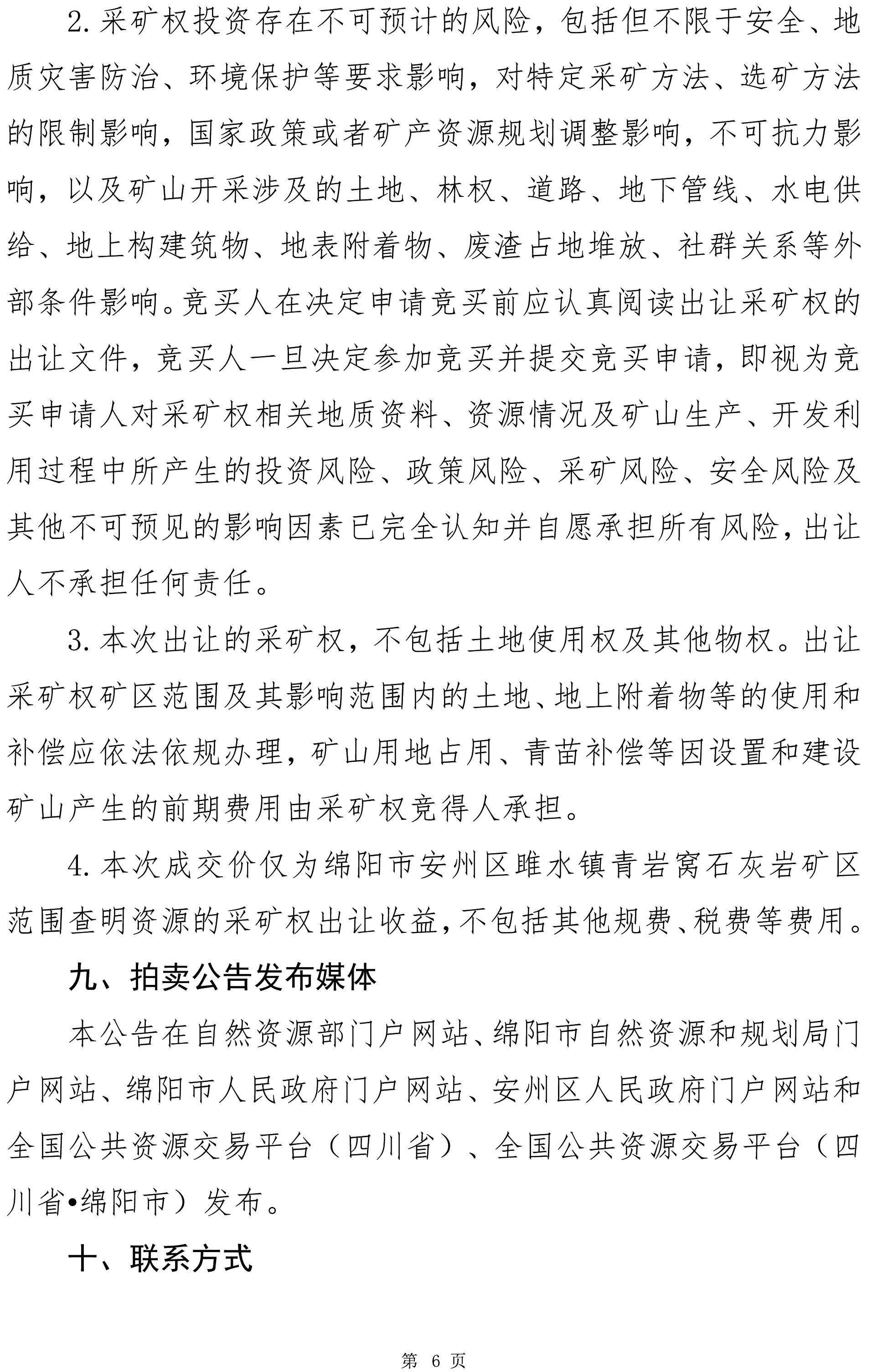 綿陽(yáng)市安州區(qū)雎水鎮(zhèn)青巖窩石灰?guī)r礦拍賣出讓文件(編號(hào):綿礦招拍掛〔2025〕3號(hào))