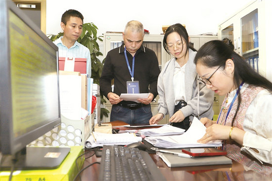 “五一”將至,浙江省金華市婺城區(qū)紀(jì)委監(jiān)委堅(jiān)守節(jié)點(diǎn),對重點(diǎn)場所、重要領(lǐng)域和關(guān)鍵環(huán)節(jié)開展監(jiān)督檢查,打好糾治“四風(fēng)”組合拳。圖為該區(qū)紀(jì)委監(jiān)委聯(lián)合審計(jì)、財(cái)政等部門對某單位“三公”經(jīng)費(fèi)使用和津補(bǔ)貼發(fā)放情況進(jìn)行抽查。樓婷 攝