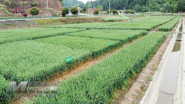 中新鎮(zhèn)來福村小麥科技示范園一角