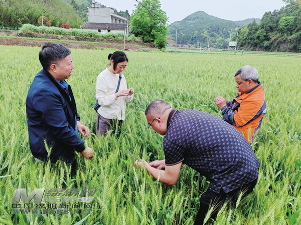 春播一粒種,秋收萬擔(dān)糧。在中新鎮(zhèn)來福村小麥種植基地,三臺縣農(nóng)業(yè)農(nóng)村局農(nóng)技推廣中心高級農(nóng)藝師羊夢正帶著技術(shù)人員對川麥93進(jìn)行理論測產(chǎn)。