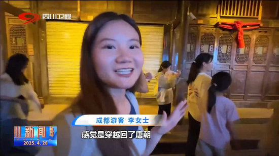 成都游客 李女士:感覺(jué)穿越回了唐朝,特別沉浸其中。商販都在吆喝,剛才很想停下來(lái),但是感覺(jué)前面可能還有更多更好玩的東西。