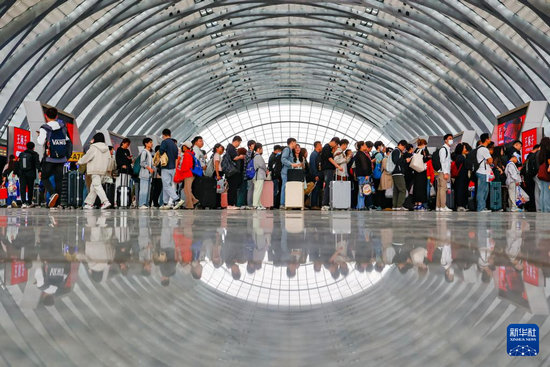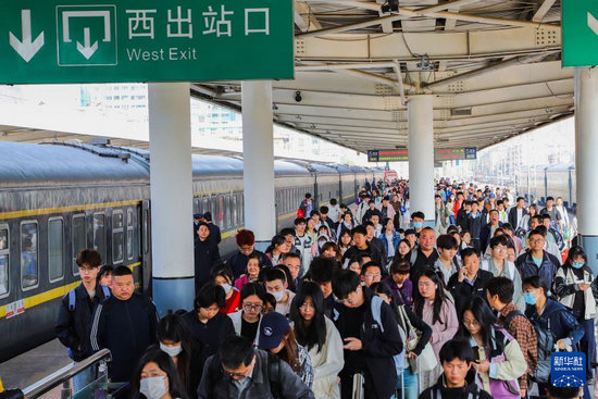 5月5日,旅客在蘭州站出站。新華社發(fā)(王光輝攝)