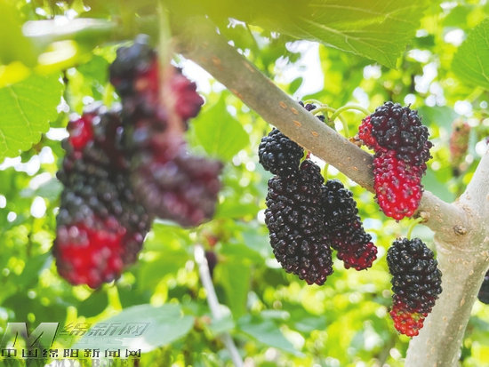 桑林間充滿歡聲笑語,游客們穿行其中,或打卡拍照,或采摘嘗鮮,在領(lǐng)略田園風(fēng)光的同時(shí)體驗(yàn)采摘樂趣。“早就聽說這里的桑葚品質(zhì)好,今天特意帶孩子來體驗(yàn)采摘,孩子特別開心。”市民李女士邊說邊將采摘的桑葚放入籃中,“既能親近大自然,又能品嘗到新鮮美味的水果,這種體驗(yàn)很難得。”