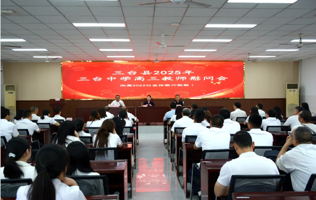 為了凝聚高三教師團(tuán)隊(duì)?wèi)?zhàn)斗力,踐行以生為本、尊師重教的理念,4月28日,三臺縣縣委、縣政府、縣教體局領(lǐng)導(dǎo)一行赴三臺中學(xué),開展了以“溫情備考 決勝高考”為主題的高三教師暖心慰問活動(dòng)。三臺縣委常委、宣傳部部長、縣委教育工委書記鐘蓓,縣委教育工委常務(wù)副書記、縣教體局黨組書記、局長嚴(yán)剛出席活動(dòng)。縣教體局黨組成員胡運(yùn)軍主持會議。