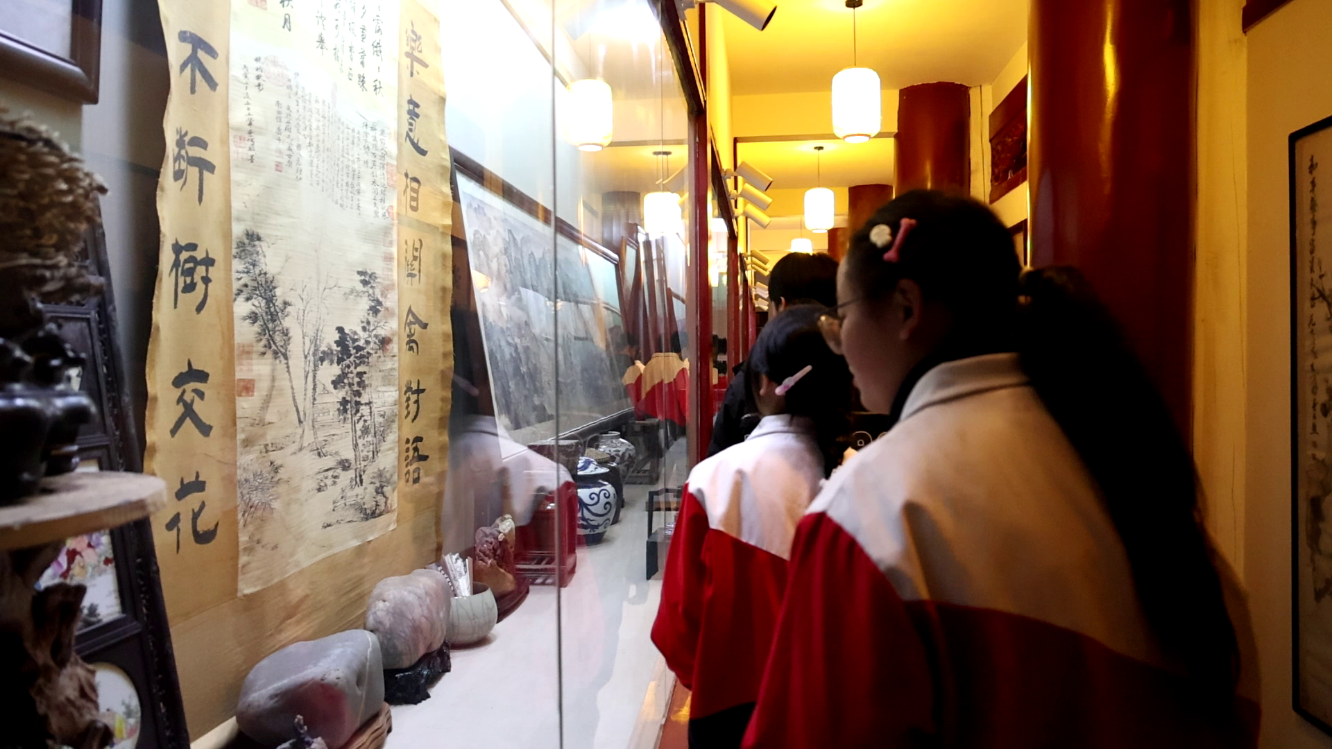 “步行3、5分鐘,孩子們就能在鄉(xiāng)村里探索古今文明。”這是大英縣天保中學教師鄧仁義帶領(lǐng)學生此行的原因。這座由原寶豐寺改造而成的金石書畫博物館,是天保鎮(zhèn)繼農(nóng)耕博物館、民俗博物館建成后的“第三館”。其建筑外觀上保留了傳統(tǒng)榫卯建筑工藝,館內(nèi)陳列著名人字畫、近現(xiàn)代創(chuàng)新畫作以及金石篆刻、扇面小品等各類藏品600余件,其中1組由108幅龍字組成的特色藏品更是曾漂洋過海赴洛杉磯展出。