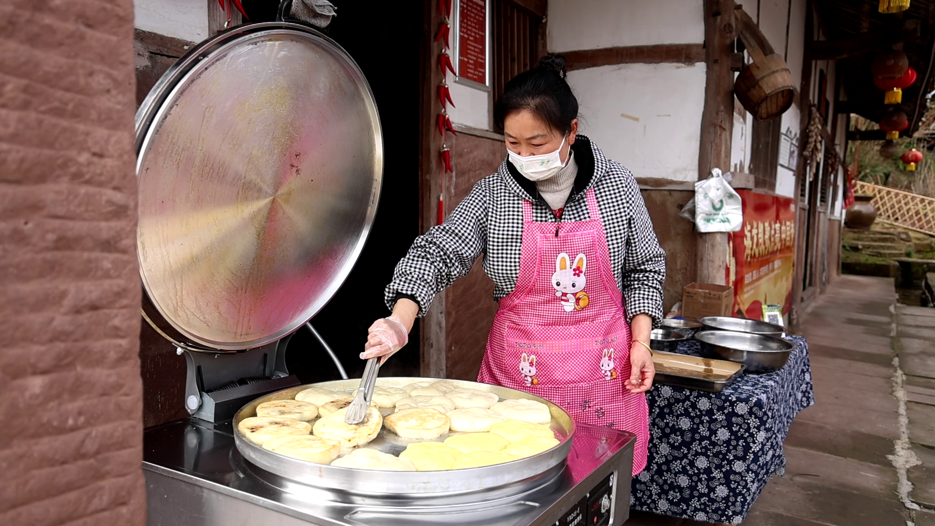 海龍村村民李鳳云回鄉(xiāng)擺攤。