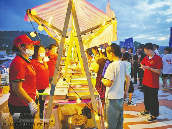 與樂跑賽事同步進(jìn)行的,是章邦小草原上熱鬧非凡的鄉(xiāng)村市集。20余個展位整齊排列,桑葉茶、嫘祖豆瓣等當(dāng)?shù)靥禺a(chǎn)琳瑯滿目,現(xiàn)蒸的“梓江鱖魚”香氣四溢,吸引眾多游客駐足品嘗。舞臺中央,獨(dú)唱、歌舞等精彩表演輪番上演,觀眾們席地而坐,一邊欣賞演出,一邊感受鄉(xiāng)村晚風(fēng)的輕撫,享受著難得的悠閑時(shí)光。高渠鎮(zhèn)黨委副書記、鎮(zhèn)長魏川介紹:“樂跑不僅是一項(xiàng)健身活動,更是一個窗口,讓大家有機(jī)會深入感受鄉(xiāng)村的生態(tài)之美。未來,我們將常態(tài)化開展鄉(xiāng)村文化市集和各類文旅活動,讓游客來了就不想走,走了還想再來。”