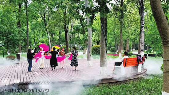綿陽新聞網(wǎng)訊 亭臺樓閣,水霧繚繞,小徑蜿蜒,鳥語花香。五月的日新公園,像一幅絕美的山水園林圖。公園于“五一”期間開園,吸引不少市民游客前來打卡,游客量達到每天6000人次。