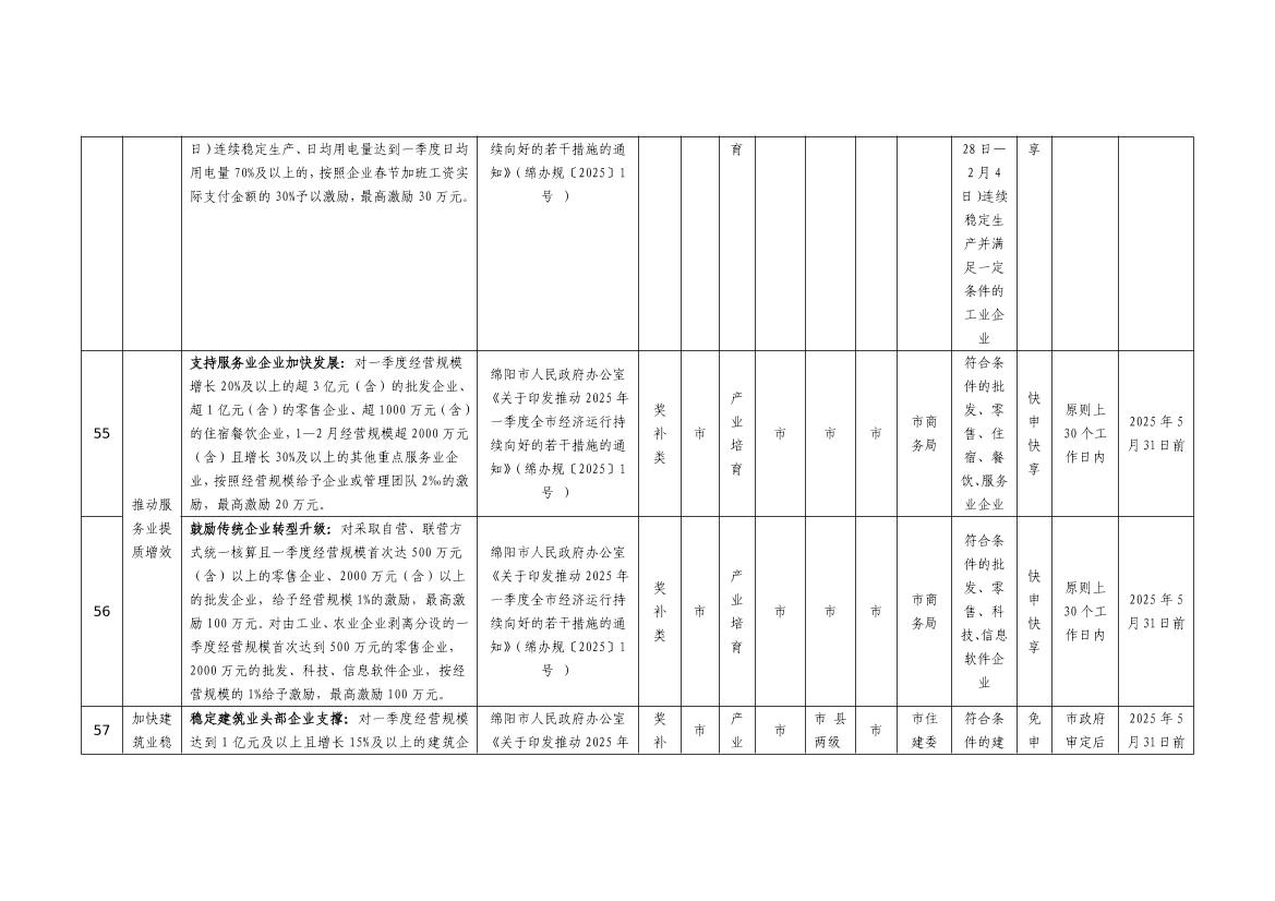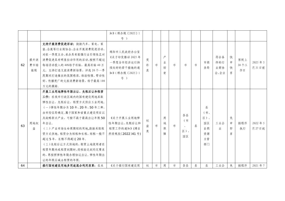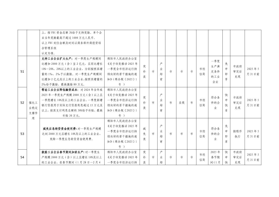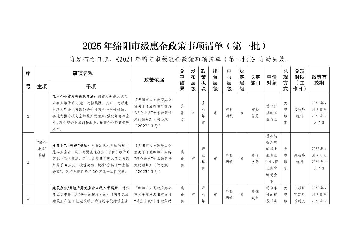 2025年綿陽市級惠企政策事項清單(第一批)