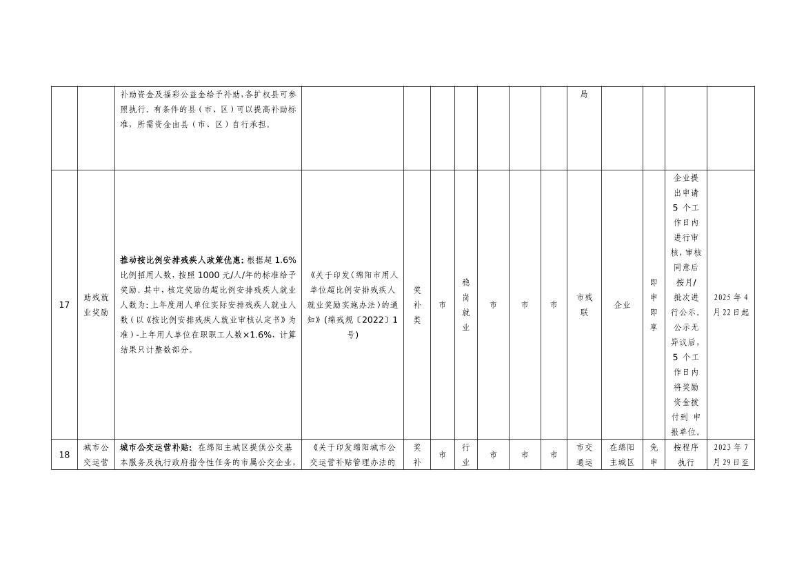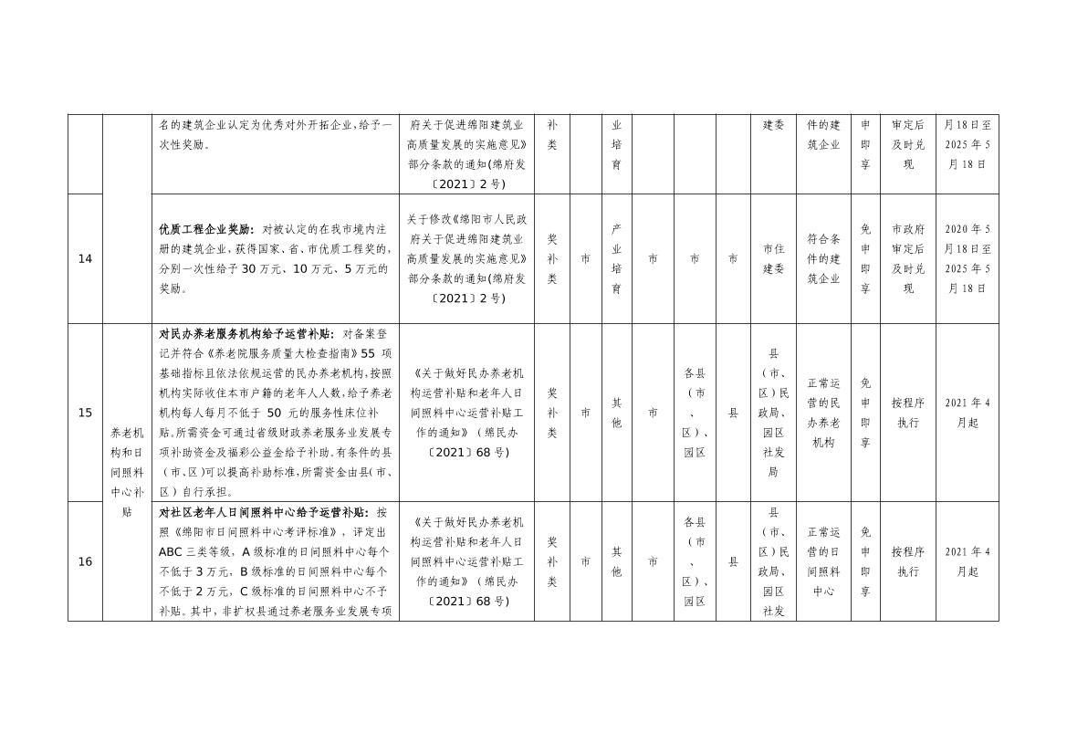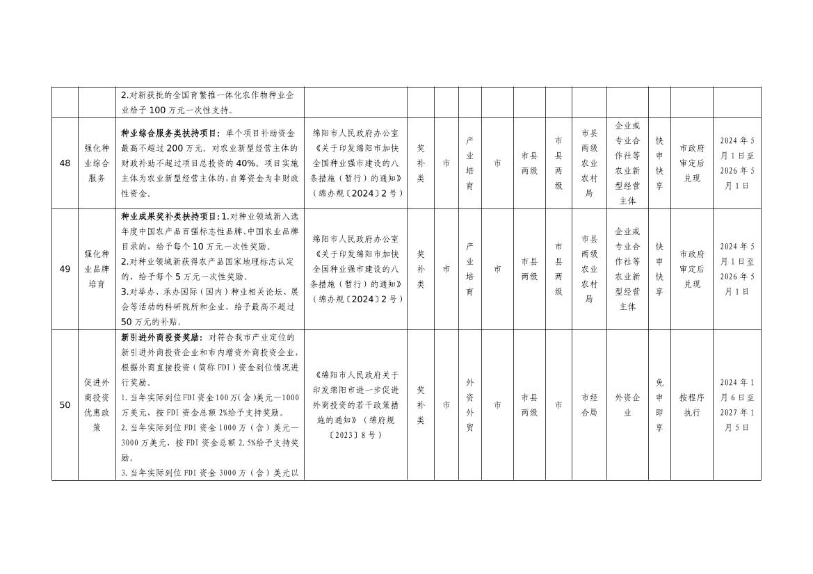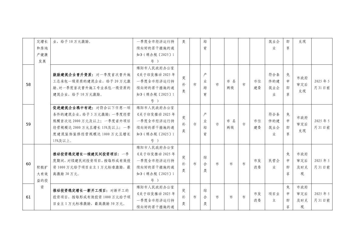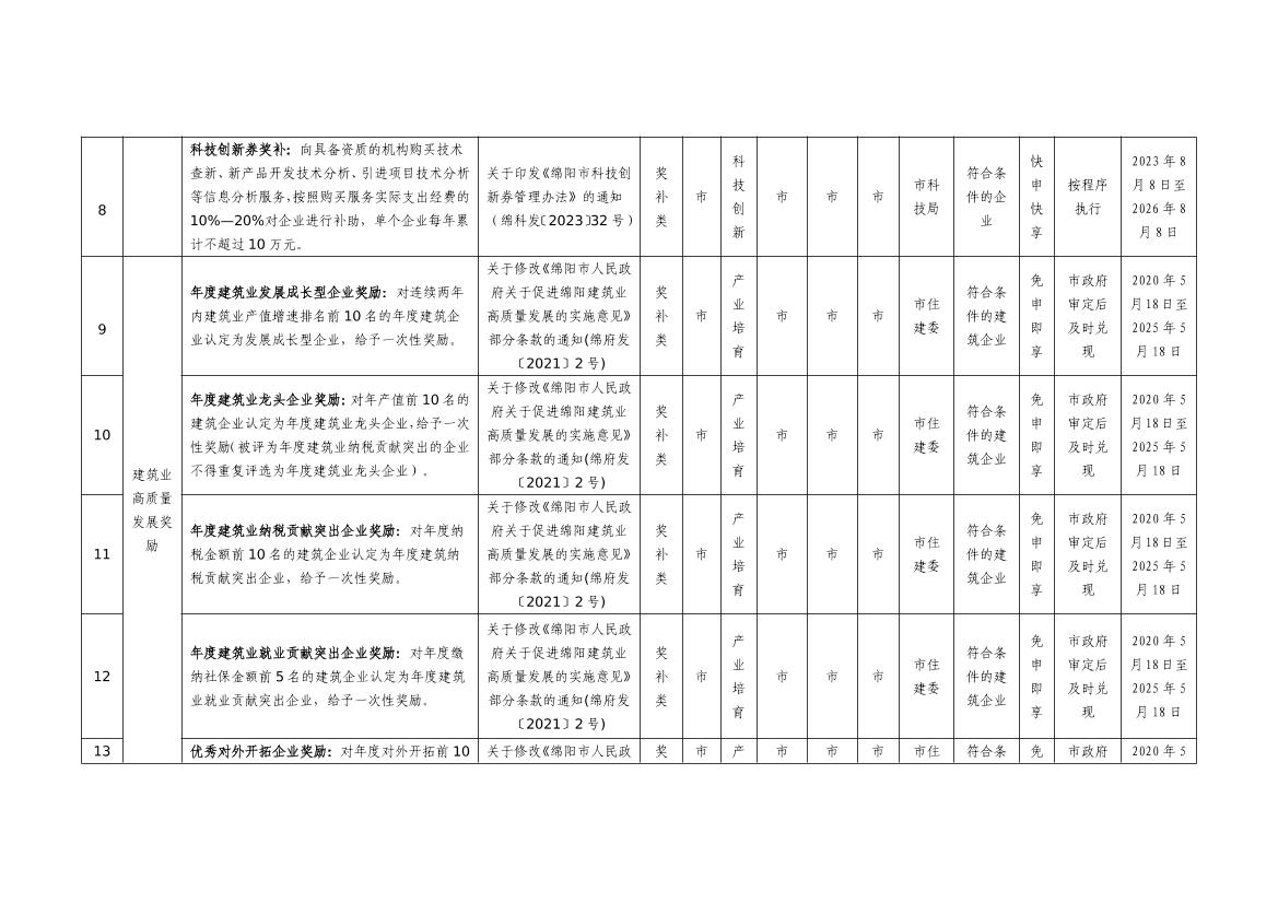 2025年綿陽市級惠企政策事項清單(第一批)