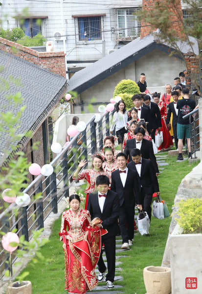 綿陽新聞網訊 5月17日,在綿陽涪城區(qū)豐谷鎮(zhèn)綿州匯館內,紅綢翻飛、禮樂悠揚,一場以“以愛之名 共赴美好”為主題的中式集體婚禮浪漫啟幕。由涪城區(qū)民政局主辦,以典雅莊重的中式婚禮為載體,融合現(xiàn)代婚俗改革理念,為報名集體婚禮的新人打造的一場“簡約而不簡單、傳統(tǒng)而不失新意”的婚禮盛宴,生動詮釋了“新事簡辦、愛意不減”的時代新風。
