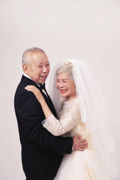 六十三年前,他們定下終身;六十三年后,她輕輕依靠在他懷里,鏡頭定格兩簇如雪白發(fā)。