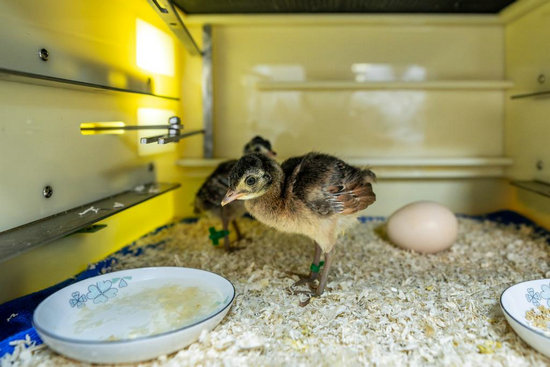 綠孔雀人工繁育領(lǐng)域也取得了突破性進展。“2024年,我們成功繁育了綠孔雀48只,孵化率從三年前的15%提升至73.85%。”云南森林自然中心野生動植物救護繁育科負責人陸琳說,截至5月22日,2025年已產(chǎn)的68枚蛋中已有12只出殼,接下來小孔雀將陸續(xù)出殼,整個孵化期將在兩個月內(nèi)完成。