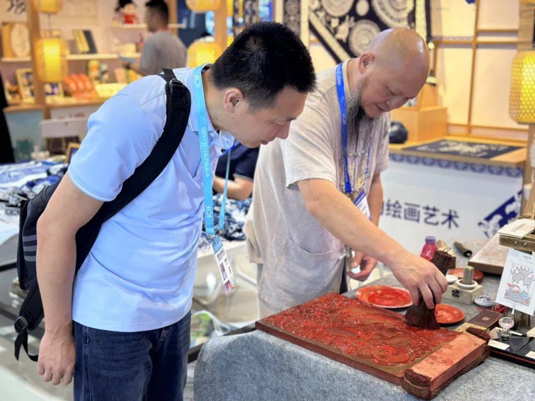 大千紙業(yè)打造的“竹紙+年畫”雙非遺體驗場景尤為驚艷。印度游客嘗試木板拓印后連連稱贊,湖北游客試紙后感嘆:“古法手工紙的韌性令人震撼!”這種“可觸摸的非遺”模式,讓傳統(tǒng)文化傳播更具感染力。