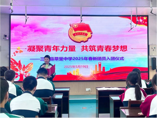 綿陽新聞網(wǎng)訊 5月19日,三臺(tái)縣草堂中學(xué)舉行了以“凝聚青年力量,共筑青春夢(mèng)想”為主題的2025年春新團(tuán)員入團(tuán)儀式。32名新團(tuán)員以青春之名,向團(tuán)旗莊嚴(yán)致敬,開啟他們光榮的共青團(tuán)員新征程。