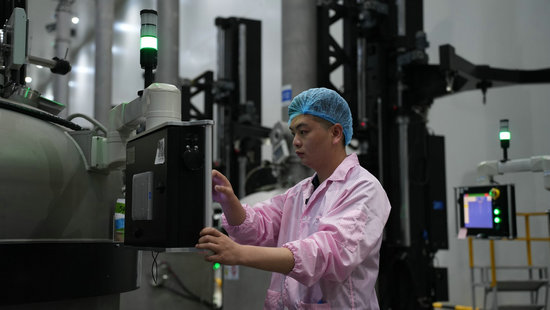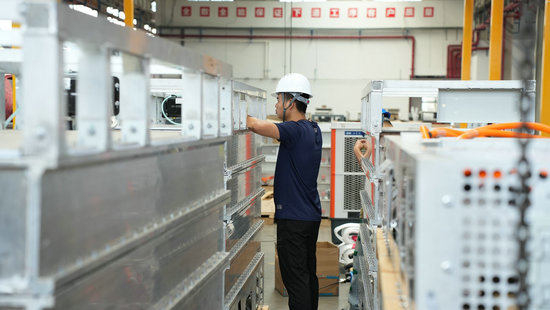 智鋰物聯宜賓生產基地內,工人正在檢查換電設備組件。羅順攝