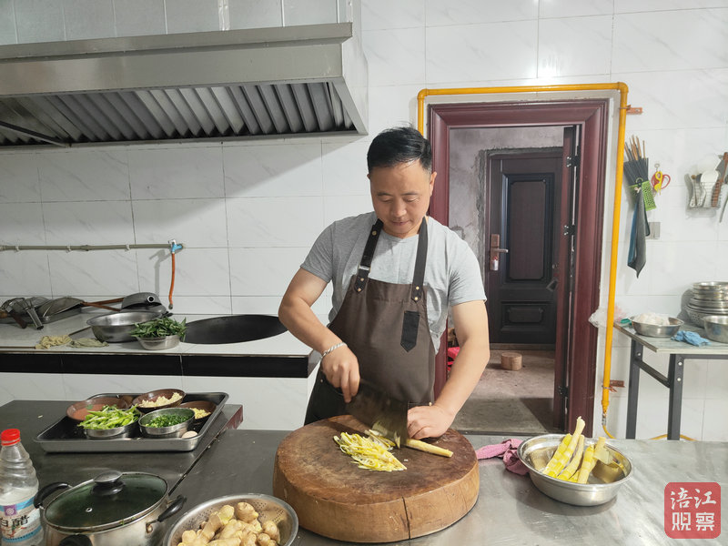 ↑陳繼良在給客人準(zhǔn)備飯菜