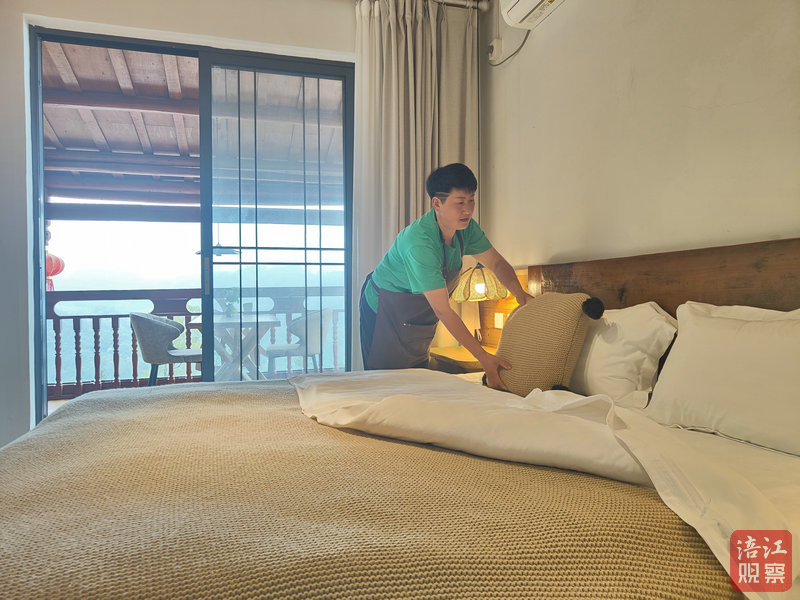 2023年,石椅村作為全國鄉(xiāng)村的代表,受到總書記的親切關(guān)懷和慰問,迎來發(fā)展新契機(jī)。當(dāng)年游客數(shù)量創(chuàng)新高,村道完成升級改造,村容舊貌換新顏,污水處理設(shè)施進(jìn)一步改善,還新建了供水站、停車場。陳繼良抓住發(fā)展機(jī)遇,申請“鄉(xiāng)村振興貸”翻新小樓,對民宿進(jìn)行提檔升級。