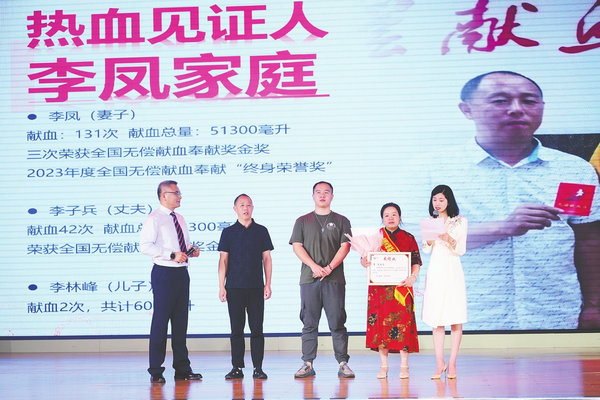 活動現(xiàn)場,頒獎嘉賓為無償獻(xiàn)血突出集體、單位及個人代表頒發(fā)榮譽(yù)獎狀,鼓勵他們繼續(xù)以熱血照亮生命之路。