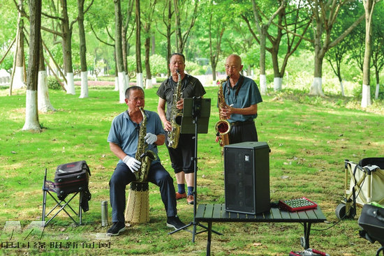 6月13日上午,記者在涪濱路、青年廣場、三江湖濕地看到,繁茂枝葉下,不少市民或吹拉彈唱,或與親友談天納涼,盡情享受夏日城市綠蔭福利,感受林蔭之美、城市之美。