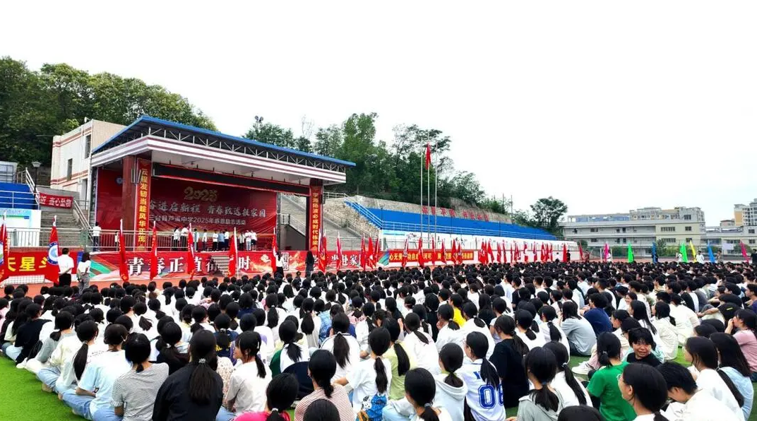 2025年6月7日上午,三臺縣蘆溪中學(xué)全體師生齊聚學(xué)校運動場舉行了以 “筑夢高二·啟航未來”為主題的2024級升級儀式暨沖刺期末動員大會,1800余名師生以昂揚之姿,以熱血為墨,正式叩響高二的大門!