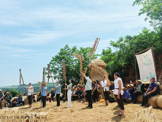 在仙鶴鎮(zhèn)帽兒山的金色麥田里,拍攝《田野歡歌》的第三個(gè)歡聚場景。
